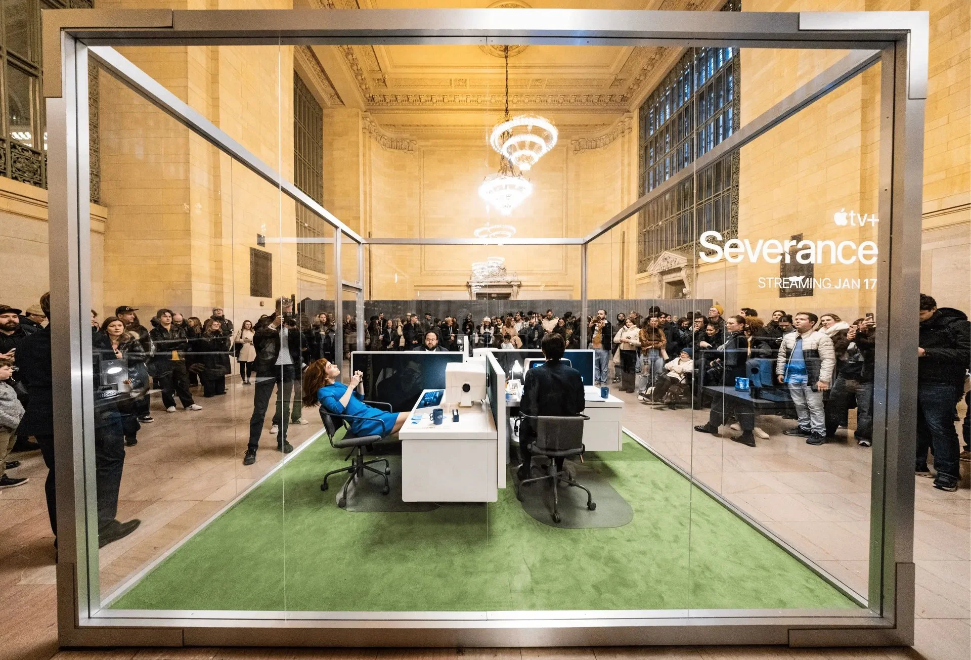 We helped bring the Lumon office to life at Grand Central Station by creating a plexi room for daily commuters to peak in and watch the cast working at their desks.