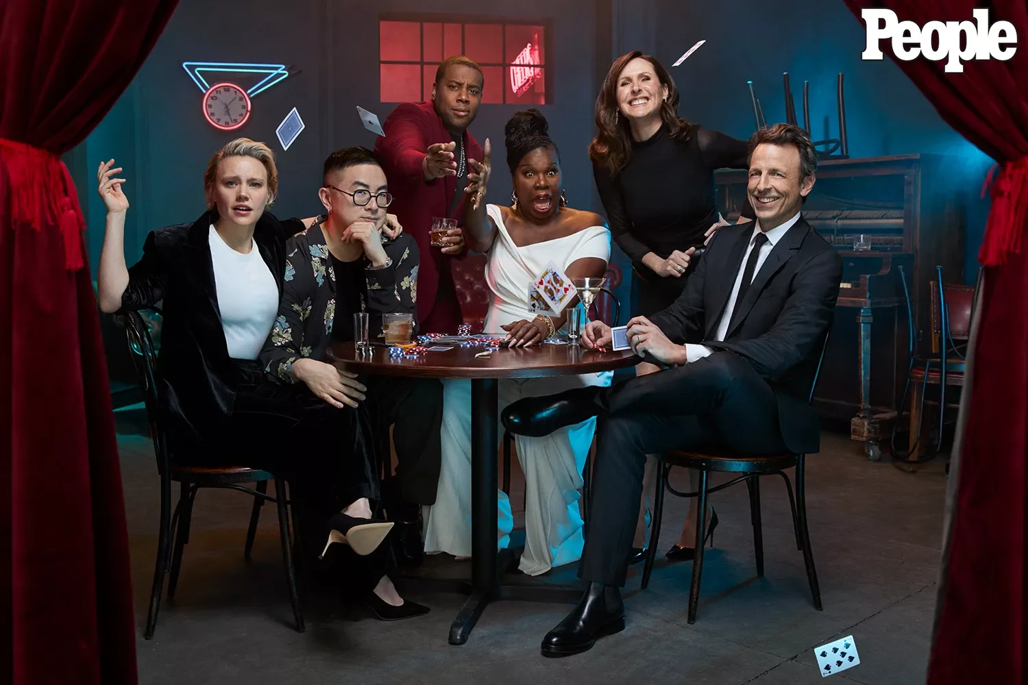Scenic basement set for SNL 50 year anniversary X People Mag.